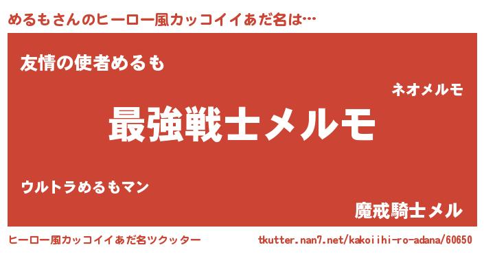 | 男性向けラノベタイトル風あだ名 | 『Re:めるもから始める異世界生活』 |