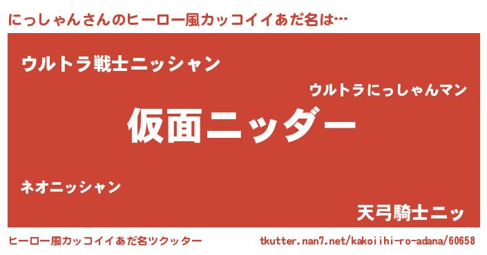 | 男性向けラノベタイトル風あだ名 | 『この素晴らしい世界ににっしゃんを!』 |