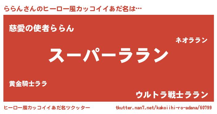 | 男性向けラノベタイトル風あだ名 | 『ラランアートオンライン』 |