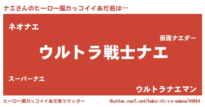| 女子向けラノベタイトル風あだ名 | 『ナエなんてお断りですっ。』 |