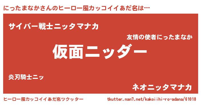 | 男性向けラノベタイトル風あだ名 | 『にったまなかに滅ぼされるだけの簡単なお仕事です』 |