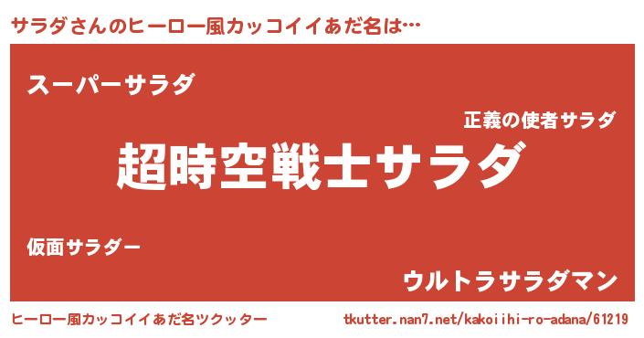| 男性向けラノベタイトル風あだ名 | 『緋弾のサラダ』『魔法科高校のサラダ』 |