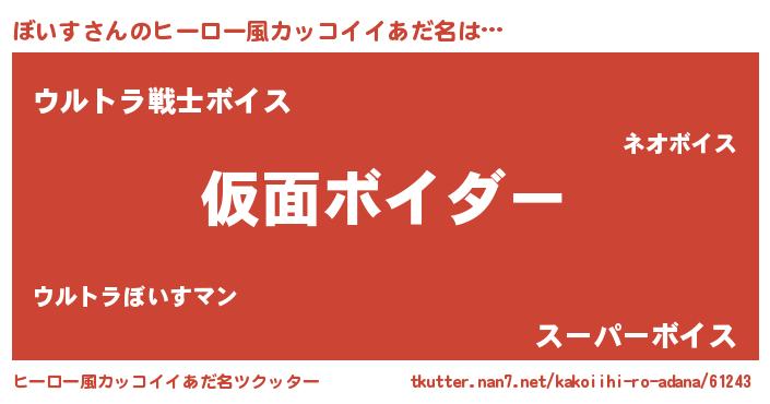 | 意味不明あだ名 | 『めかぶ科ぼいす属』『自称ぼいす』 |