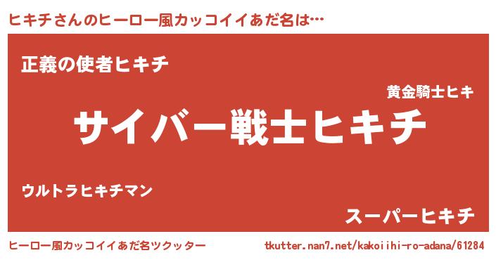 | 男性向けラノベタイトル風あだ名 | 『転生したらヒキチだった件』 |