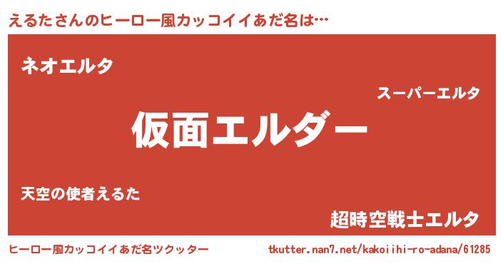 | 男性向けラノベタイトル風あだ名 | 『この素晴らしい世界にえるたを!』 |