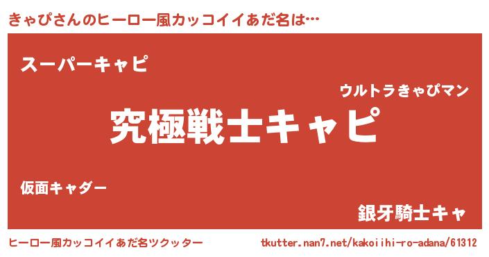 | 男性向けラノベタイトル風あだ名 | 『Re:きゃぴから始める異世界生活』 |