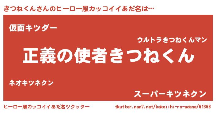 | 女子向けラノベタイトル風あだ名 | 『きつねくん夫妻のなれそめ』 |