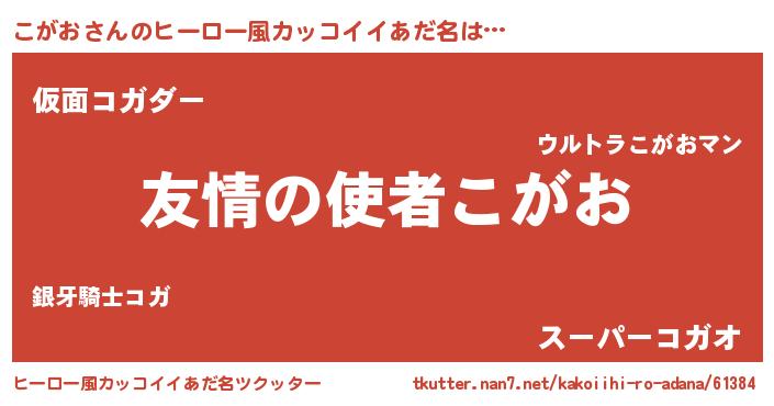 | 意味不明あだ名 | 『めかぶ科こがお属』『ペロリンこがお』 |