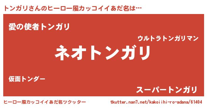 | 男性向けラノベタイトル風あだ名 | 『トンガリという概念が存在しない退屈な世界 』 |