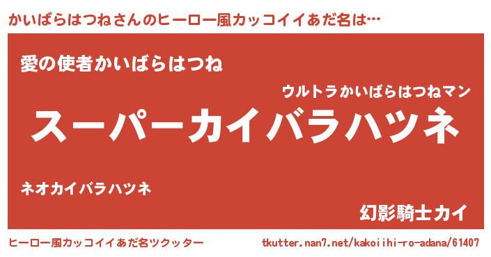 | 胡散臭い通販商品みたいなあだ名 | 『必ず成功する霊験あらたかなお札…その名も「かいばらはつね」』 |