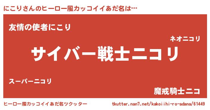 | 意味不明あだ名 | 『なめこ科にこり属』『自称にこり』 |