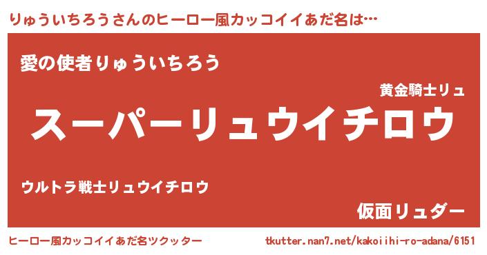 | 胡散臭い通販商品みたいなあだ名 | 『億万長者になれる霊験あらたかなお札…その名も「りゅういちろう」』 |