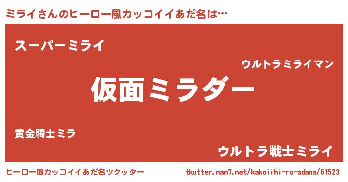 | 意味不明あだ名 | 『住所不定無職ミライ(6歳)』『自称ミライ』 |