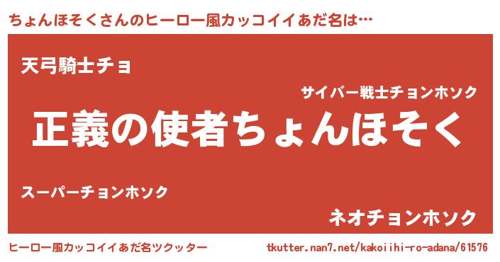 | ポケモン風あだ名 | 『チックウザ』『ヒチョンホソク』 |