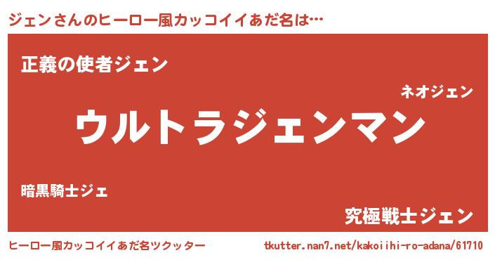 | 男性向けラノベタイトル風あだ名 | 『やはりジェンの青春ラブコメはまちがっている 』 |