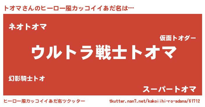 | 意味不明あだ名 | 『自称トオマ』『永久保存トオマ』 |
