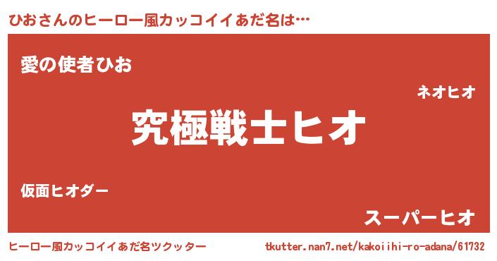 | 男性向けラノベタイトル風あだ名 | 『うちのひおが世界を掌握している!』 |