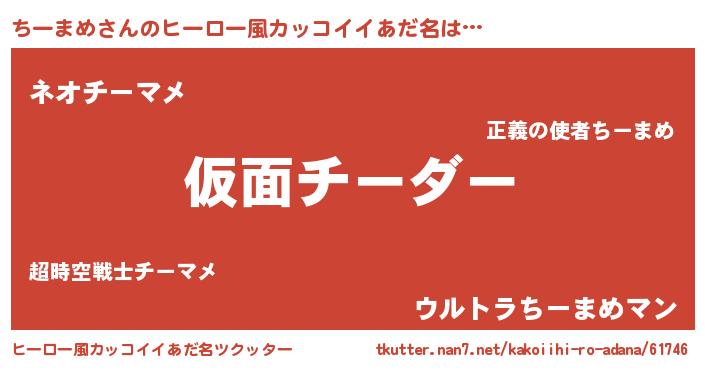 | 男性向けラノベタイトル風あだ名 | 『魔弾の王とちーまめ』 |