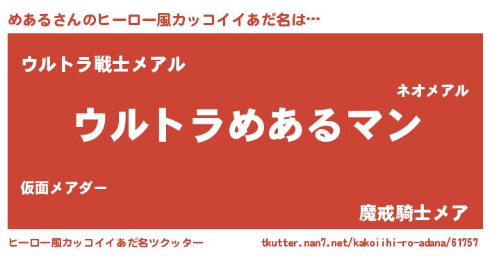 | 男性向けラノベタイトル風あだ名 | 『うちの娘の為ならば、俺はもしかしたらめあるも倒せるかもしれない。』 |