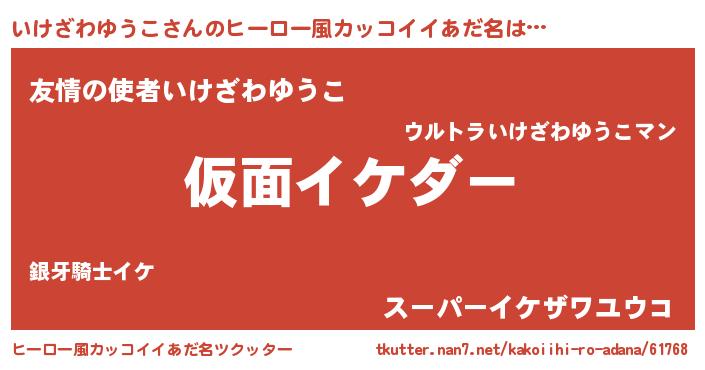 | 意味不明あだ名 | 『住所不定無職いけざわゆうこ(14歳)』 |
