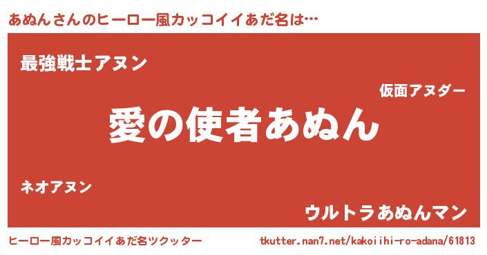 あぬんさんのヒーロー風カッコイイあだ名をツクッター!