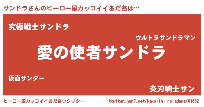| 女子向けラノベタイトル風あだ名 | 『サンドラ恋絵巻』『サンドラ様がみてる』 |