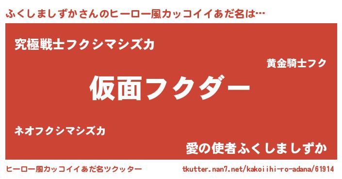 | 意味不明あだ名 | 『住所不定無職ふくしましずか(68歳)』 |