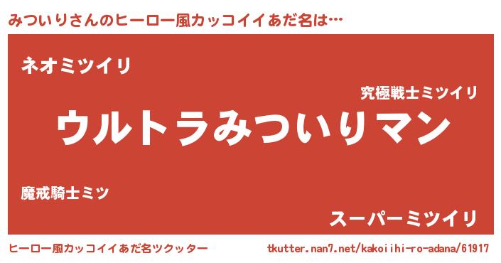 | 男性向けラノベタイトル風あだ名 | 『緋弾のミツイリ』『ミツイリスレイヤー』 |