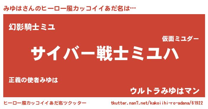 | 女子向けラノベタイトル風あだ名 | 『闇のみゆは』『みゆはの卵を拾いまして』 |