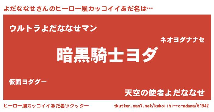 | 胡散臭い通販商品みたいなあだ名 | 『信頼と実績のサプリメント…その名も「よだななせ」』 |