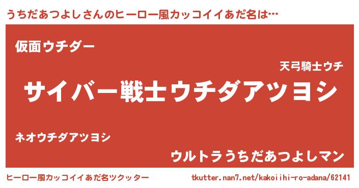 | 男性向けラノベタイトル風あだ名 | 『Re:うちだあつよしから始める異世界生活』 |