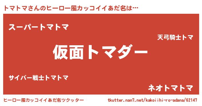 | 男性向けラノベタイトル風あだ名 | 『この素晴らしい世界にトマトマを!』 |