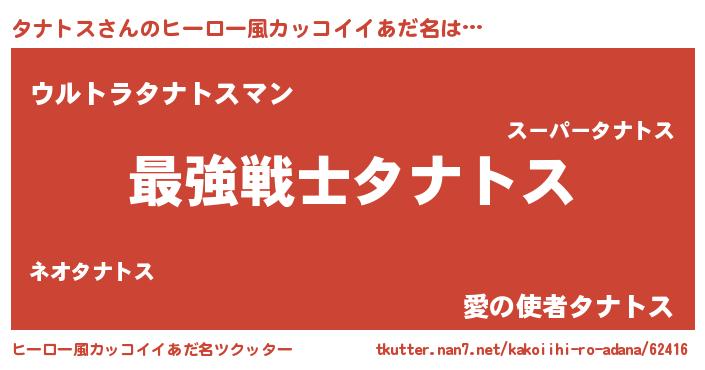 | 意味不明あだ名 | 『自称タナトス』『タナトスフォーエバー』 |