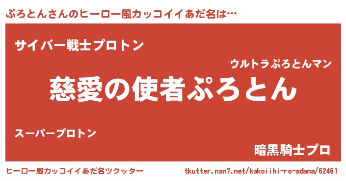 | 女子向けラノベタイトル風あだ名 | 『死神ぷろとんの再婚』『闇のぷろとん』 |