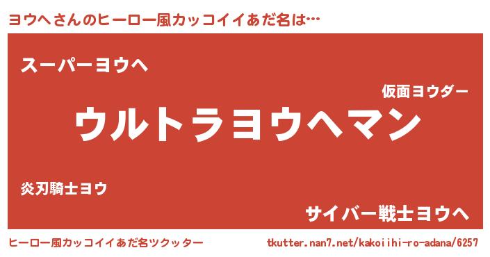 | 男性向けラノベタイトル風あだ名 | 『ヨウヘに滅ぼされるだけの簡単なお仕事です』 |