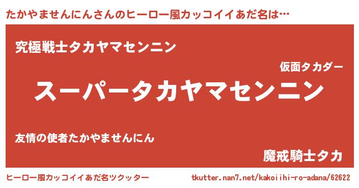 | 男性向けラノベタイトル風あだ名 | 『たかやませんにんに滅ぼされるだけの簡単なお仕事です』 |