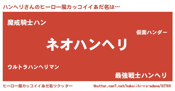 | 意味不明あだ名 | 『永久保存ハンヘリ』『自称ハンヘリ』 |