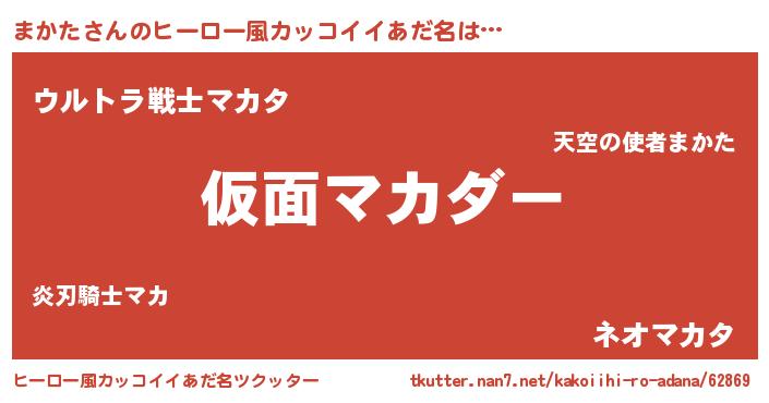 | 男性向けラノベタイトル風あだ名 | 『まかたに滅ぼされるだけの簡単なお仕事です』 |