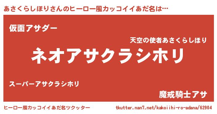 | 男性向けラノベタイトル風あだ名 | 『あさくらしほりに滅ぼされるだけの簡単なお仕事です』 |