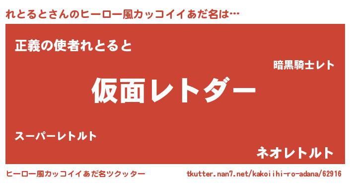 | 女子向けラノベタイトル風あだ名 | 『れとるとが死なない童話 林檎のれとるとの診療簿』 |