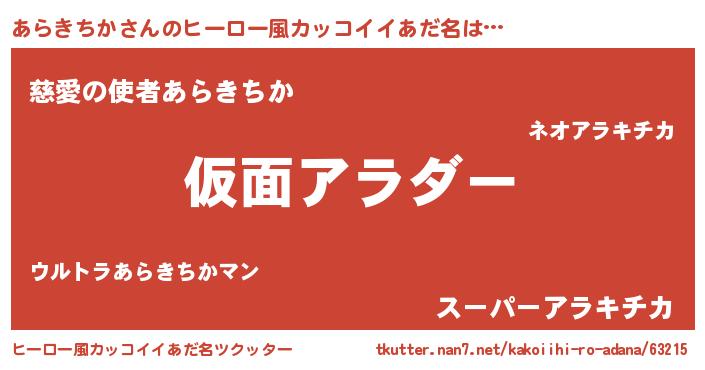| 意味不明あだ名 | 『住所不定無職あらきちか(56歳)』 |