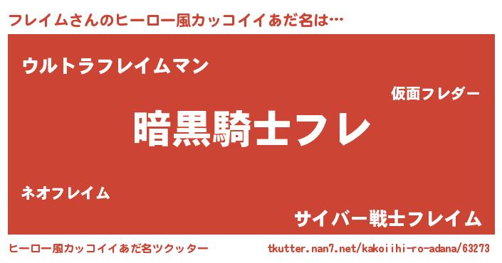 | 女子向けラノベタイトル風あだ名 | 『フレイムは平凡を望む』『闇のフレイム』 |