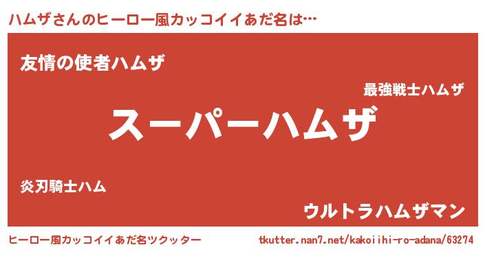| 女子向けラノベタイトル風あだ名 | 『ハムザ姫と円卓の騎士』『ハムザ恋絵巻』 |