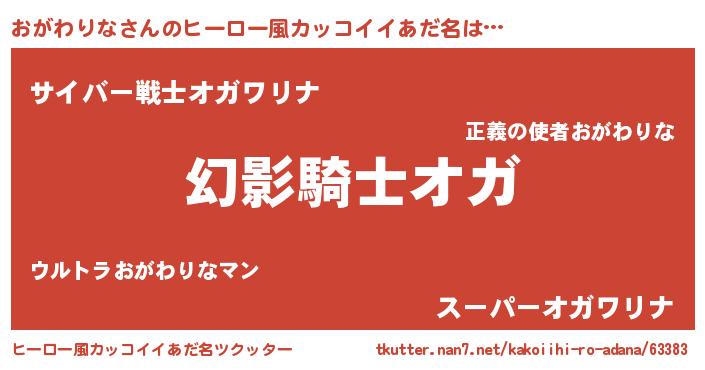 | 男性向けラノベタイトル風あだ名 | 『転生したらおがわりなだった件』 |
