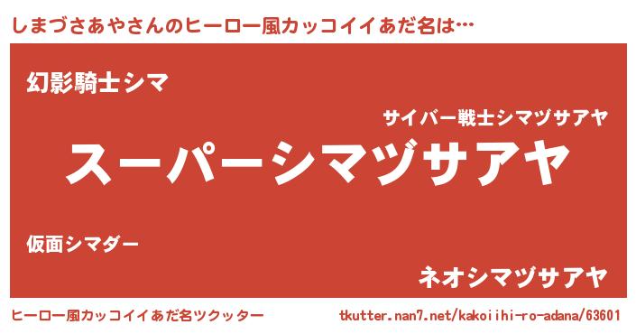| 男性向けラノベタイトル風あだ名 | 『シマヅサアヤスレイヤー』 |
