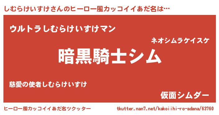 | 女子向けラノベタイトル風あだ名 | 『しむらけいすけは平凡を望む』 |