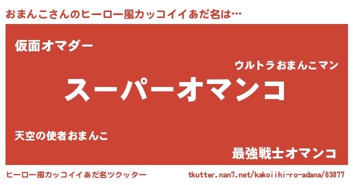| 男性向けラノベタイトル風あだ名 | 『おまんこ~年齢イコール彼女いない歴の魔法使い~』 |