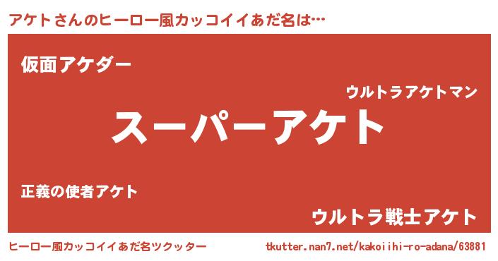 | 男性向けラノベタイトル風あだ名 | 『アケトの憂鬱』『魔弾の王とアケト』 |