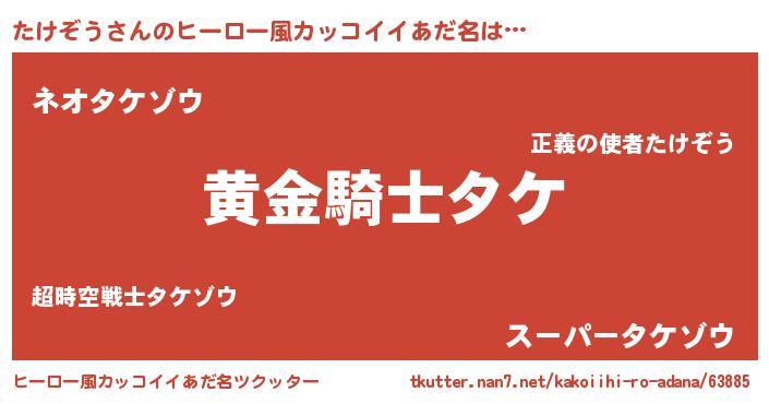 | 女子向けラノベタイトル風あだ名 | 『たけぞうは平凡を望む』 |