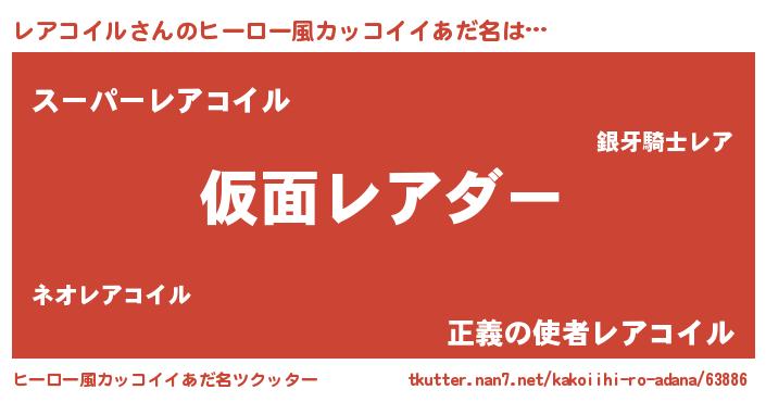 | 意味不明あだ名 | 『住所不定無職レアコイル(77歳)』 |